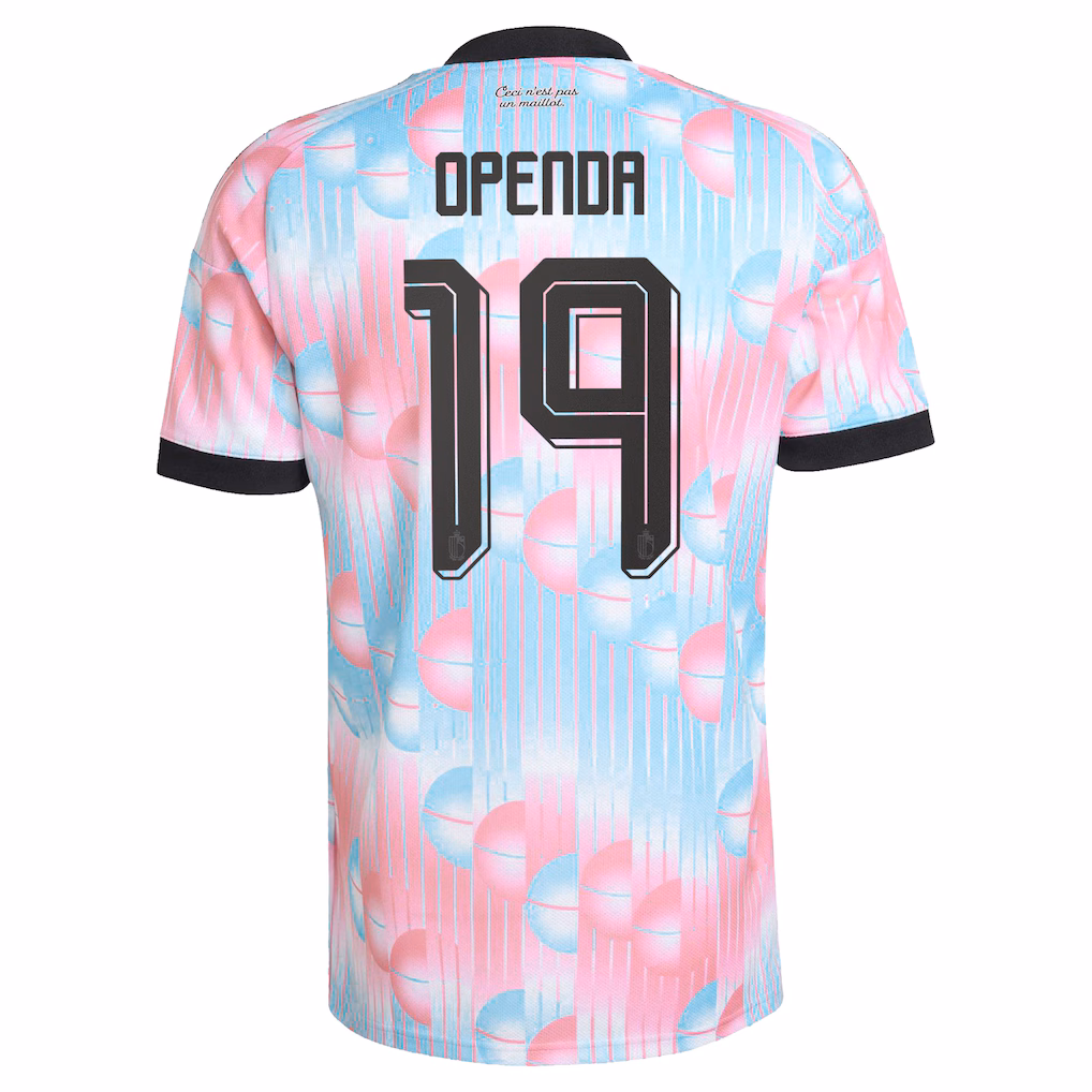 Belgium adidas Away Authentic Shirt 2026 with Openda 19 printing